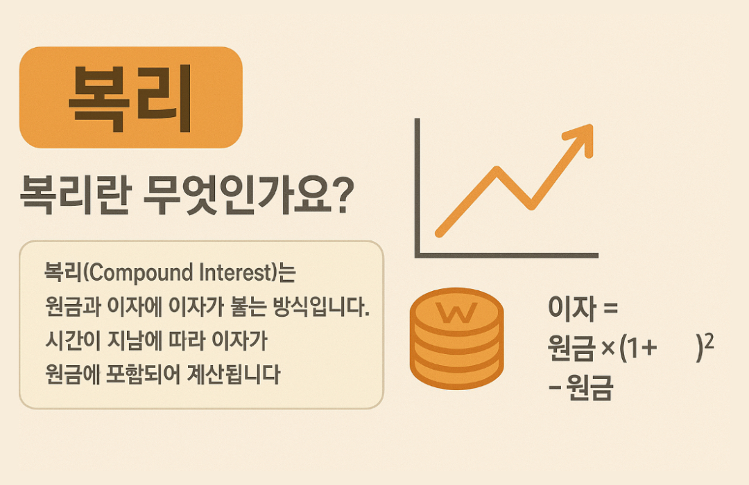복리(Compound Interest)는 이자에 또 이자가 붙는 방식으로, 시간이 지날수록 원금과 이자가 함께 불어납니다.