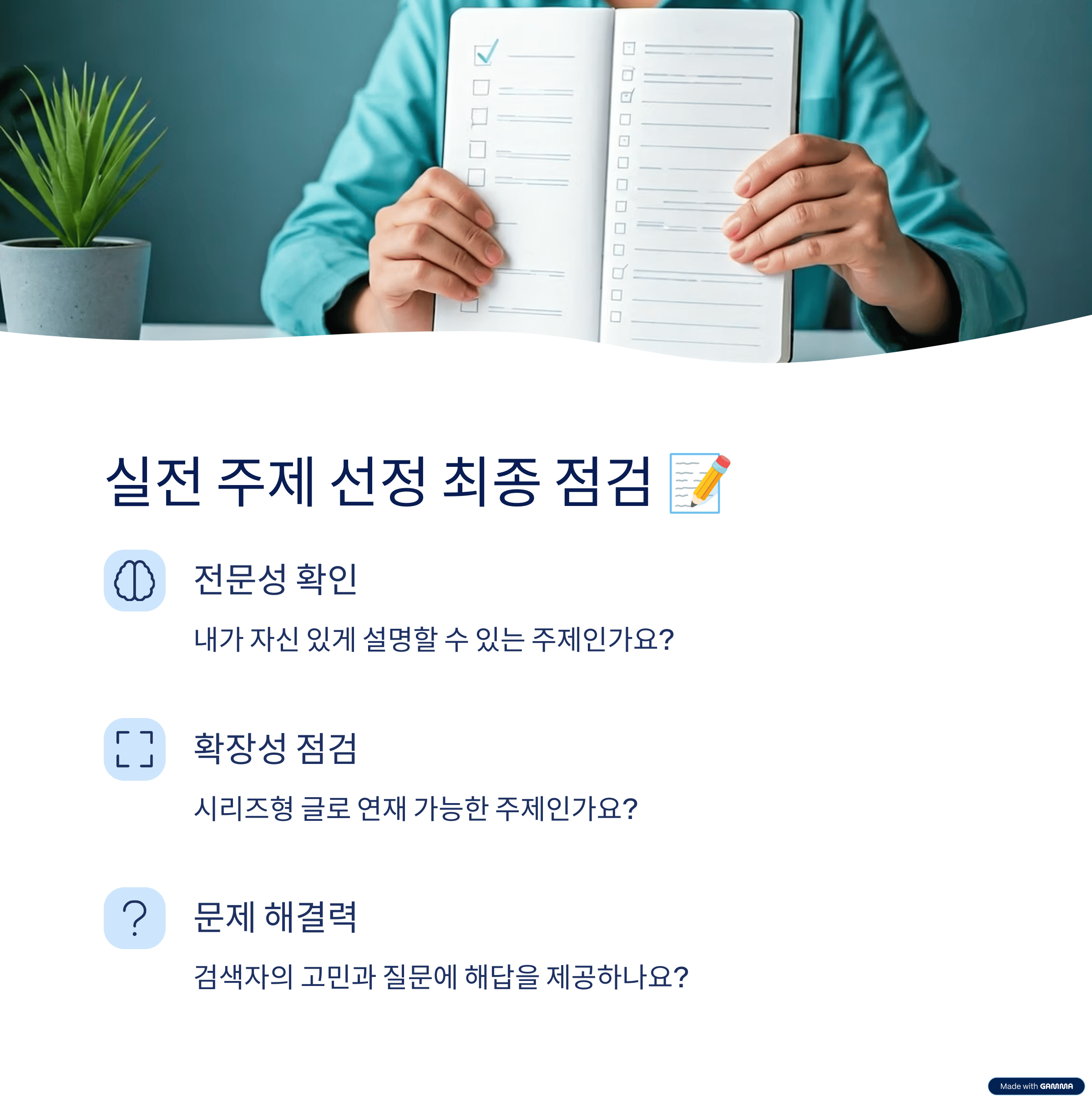 - 내가 직접 설명할 수 있는 주제인가?