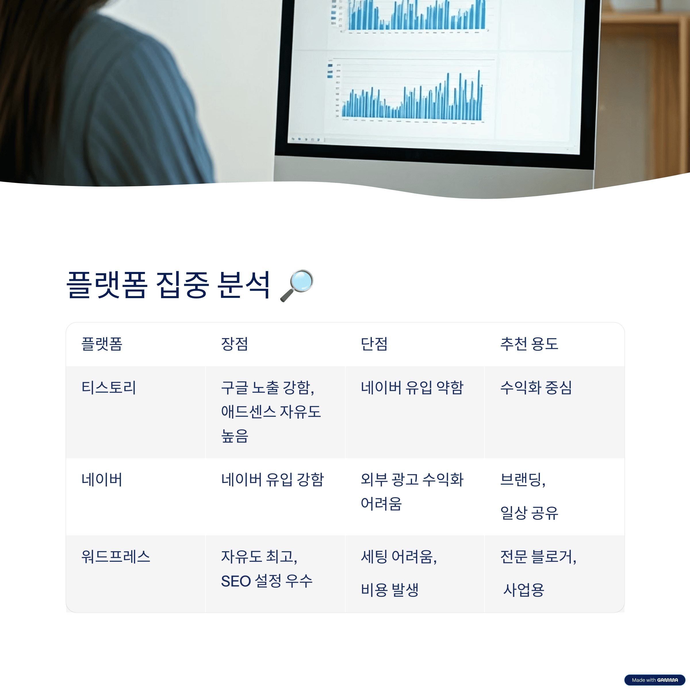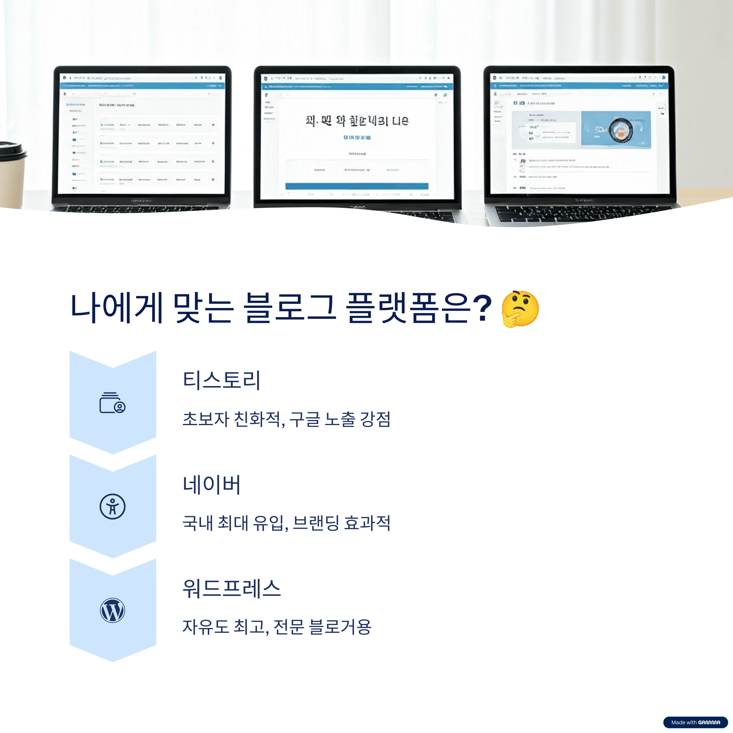 | 항목 | 티스토리 | 네이버 | 워드프레스 |