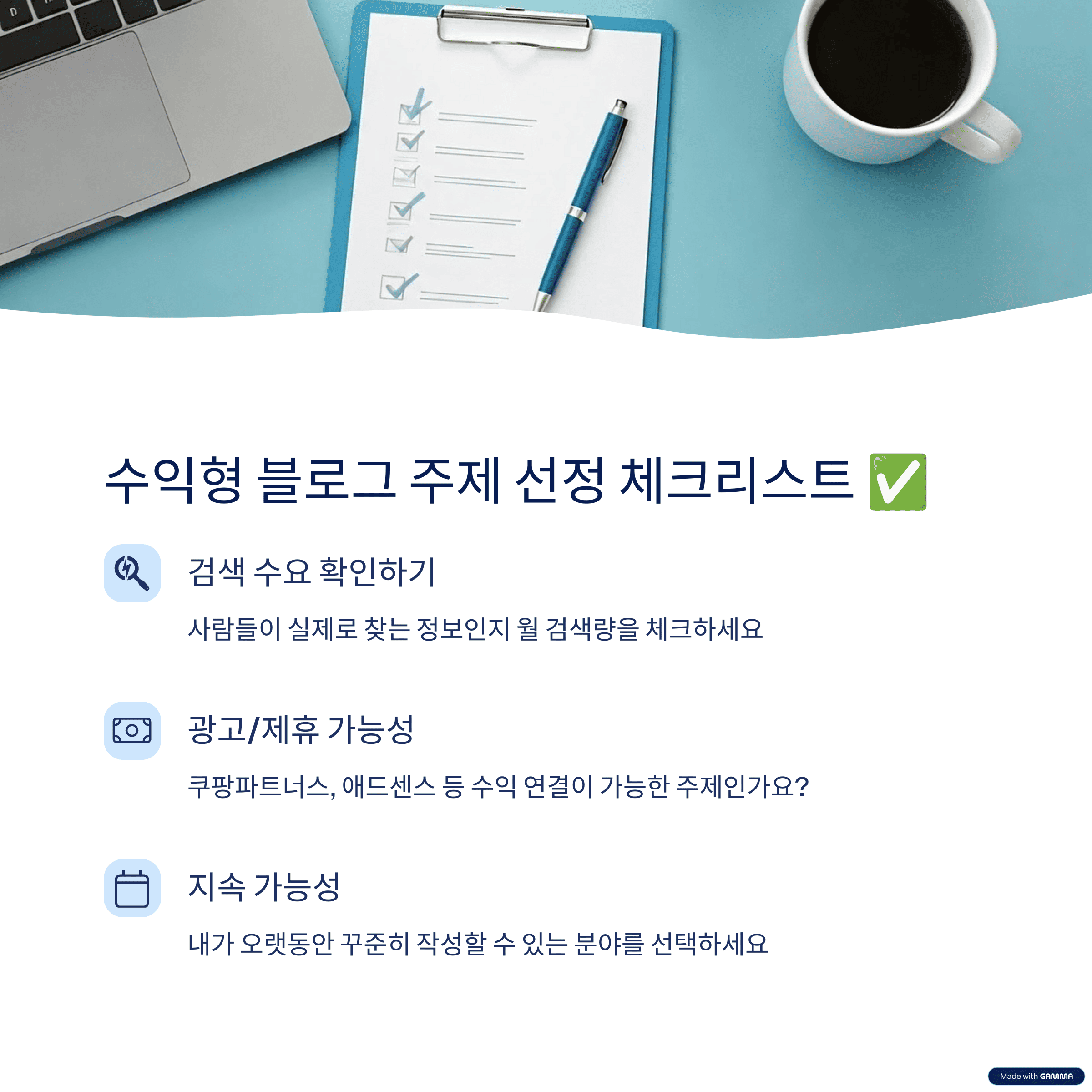 이 글에서는 수익형 블로그 성공의 핵심인 ‘주제 선정’과 ‘플랫폼 선택’을 정리합니다.