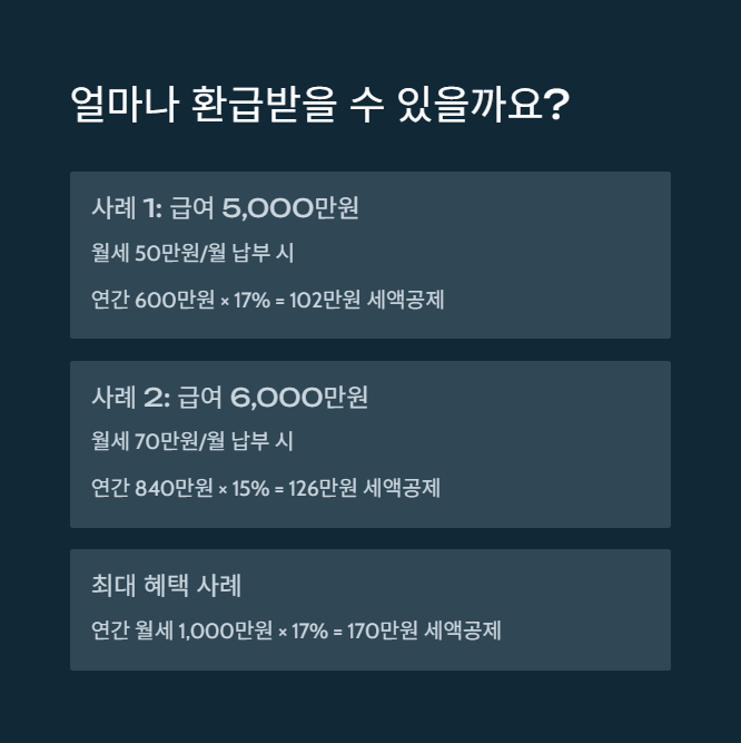 - 공제 적용 월세액 한도: 연 1,000만 원