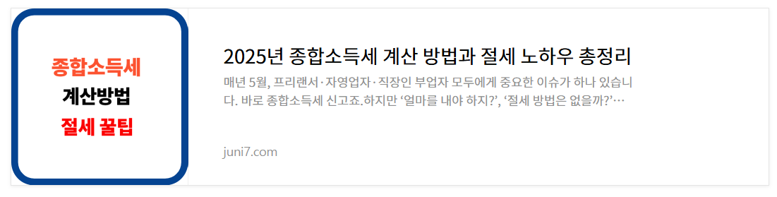 | 2025년 종합소득세 계산 방법과 절세 노하우 총정리 (0) | 2025.05.09 |