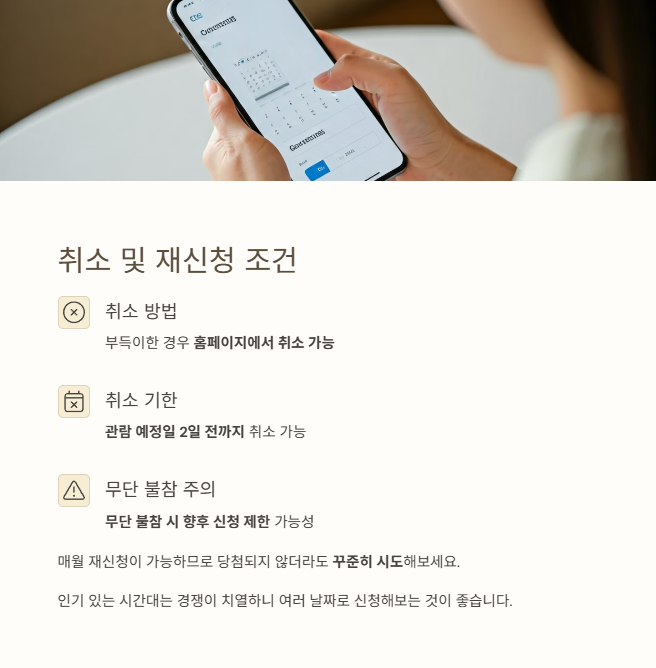 취소는 관람 예정일 2일 전까지 가능하며,