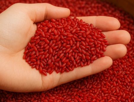 붉은 누룩 곰팡이(Monascus purpureus)로 발효시킨 쌀을 ‘홍국쌀’이라고 부릅니다.