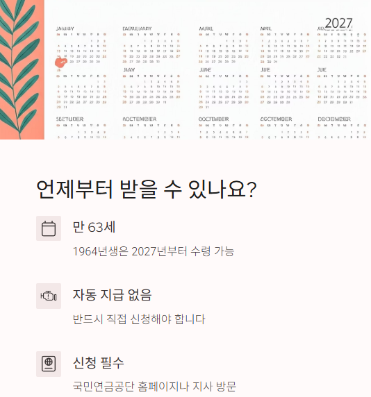 1964년생이시라면 국민연금 수령 시기와 방법에 대해 정확히 알고 계셔야 합니다. 자동으로 지급되지 않기 때문에, 지금 준비하지 않으면 하루도 소급되지 않습니다.