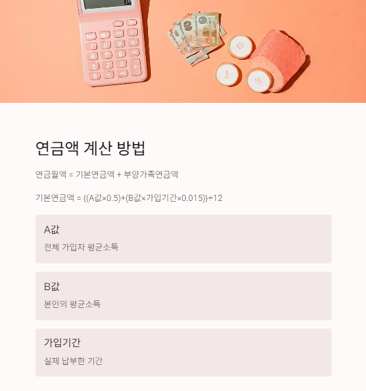 기본연금액 = { (A값 × 0.5) + (B값 × 가입기간 × 0.015) } ÷ 12