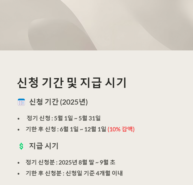 - 기한 후 신청분: 신청일 기준 4개월 이내