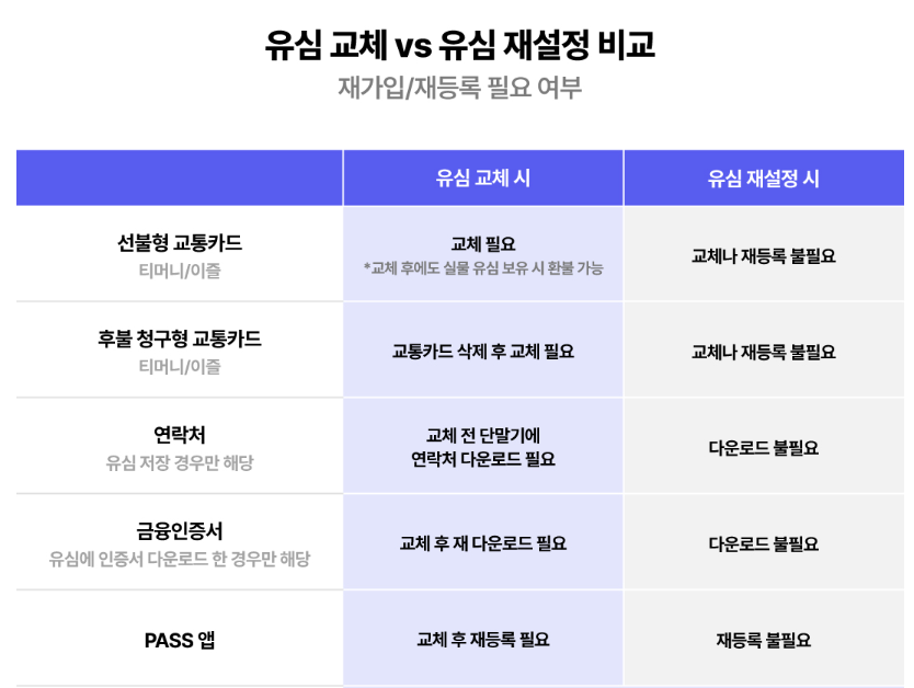 | 항목 | 유심 재설정 | 유심 교체 |